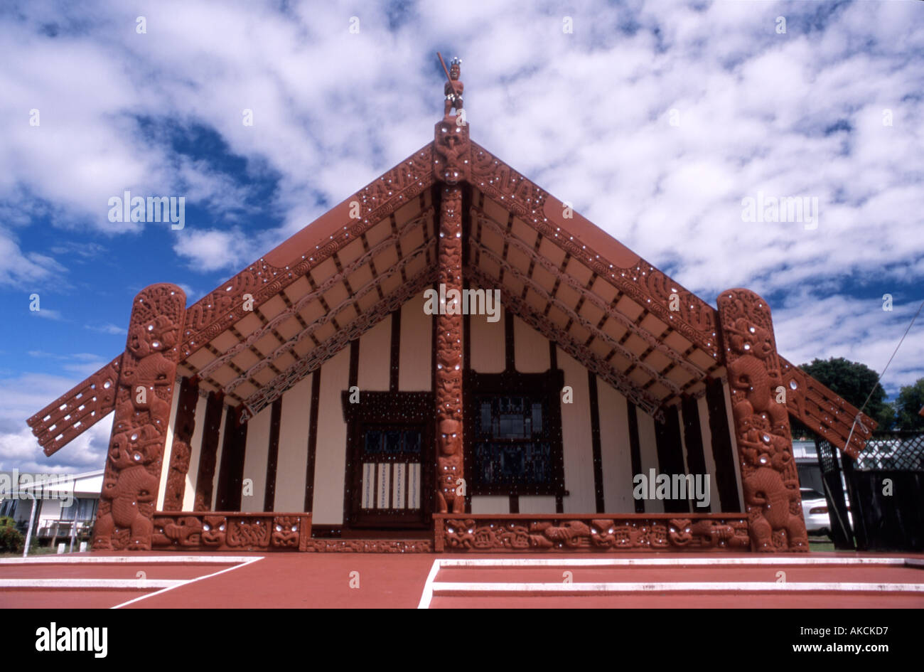 Traditional Maori whare meeting house showing traditional Sumber : www.alamy.com